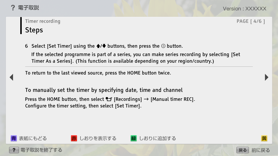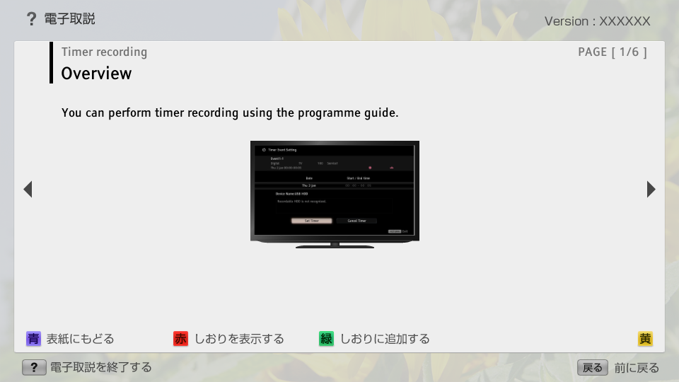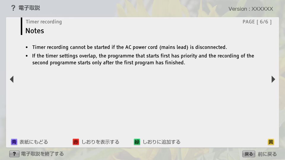 - ・ If the timer settings overlap, the programme that starts first has priority and the recording of the second programme starts only after the first program has finished.
