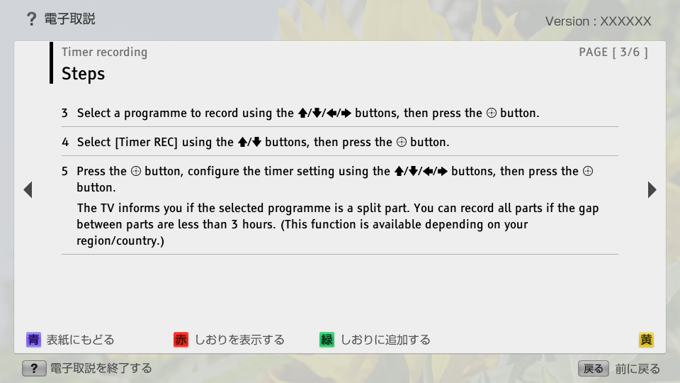 - The TV informs you if the selected programme is a split part. You can record all parts if the gap between parts are less than 3 hours. (This function is available depending on your region/country.)