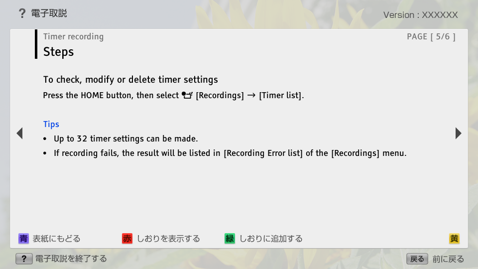 - ・ If recording fails, the result will be listed in [Recording Error list] of the [Recordings] menu.