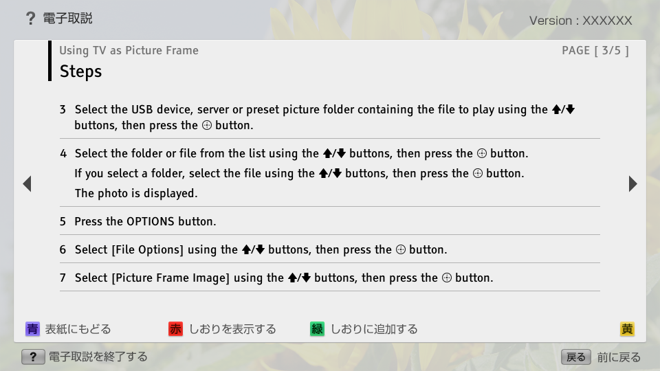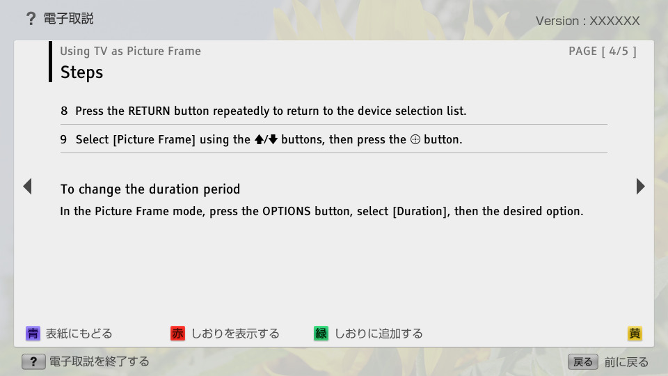 - In the Picture Frame mode, press the OPTIONS button, select [Duration], then the desired option.