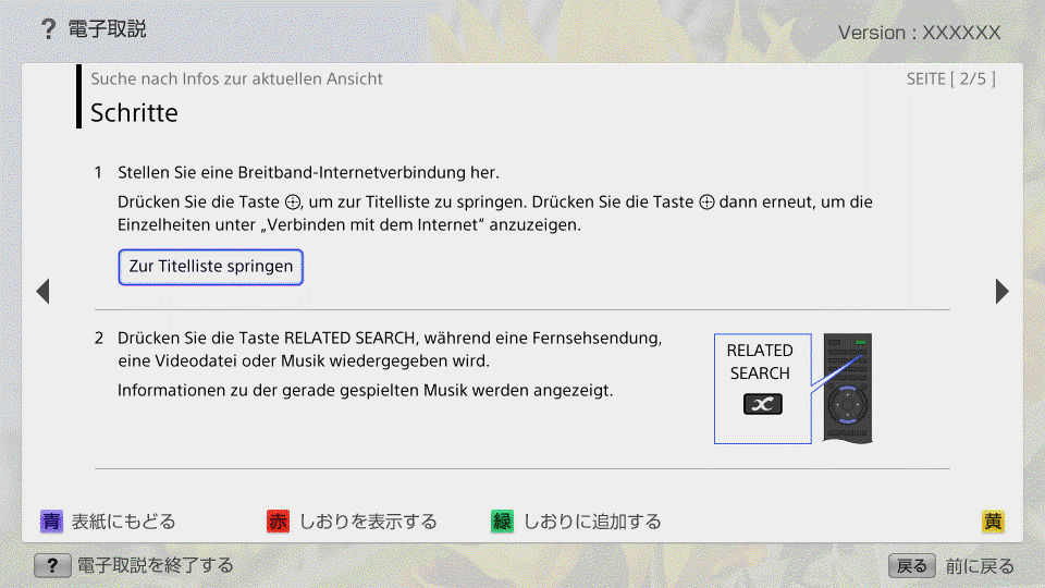 - 2. Drücken Sie die Taste RELATED SEARCH, während eine Fernsehsendung, eine Videodatei oder Musik wiedergegeben wird.