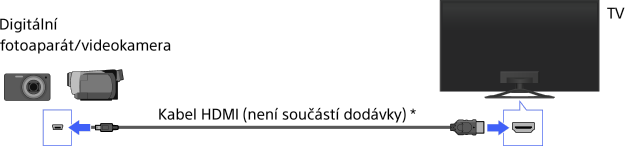 Připojte svůj digitální fotoaparát nebo videokameru Sony pomocí kabelu HDMI. Použijte kabel, který má na jednom konci minikonektor HDMI pro digitální fotoaparát/videokameru a běžný konektor HDMI na druhém konci.