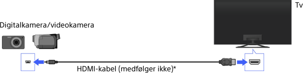 Tilslut dit Sony-digitalkamera eller -videokamera ved hjælp af et HDMI-kabel. Brug et kabel, som har et HDMI-ministik til digitalkamera/videokamera og et standard-HDMI-stik til tv'et.