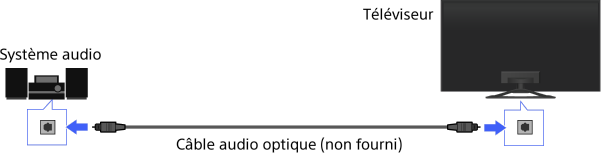 Raccordez un système audio (par exemple, un système home cinéma) avec entrée numérique au téléviseur à l’aide d’un câble audio optique.