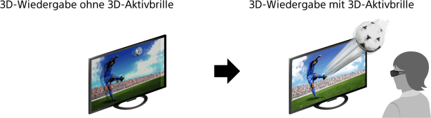 Sie können 3D-Inhalte wie stereoskopische 3D-Videospiele und Blu-ray 3D-Discs wiedergeben lassen. Sie können auch normale 2D-Inhalte mit 3D-Effekt anschauen.