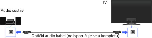 Priključite audiosustav (npr. kućno kino) s digitalnim ulazom na televizor putem optičkog audiokabela.