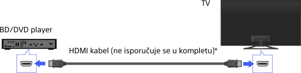 HDMI priključak preporučuje se za optimalnu kvalitetu slike. Ako vaš BD/DVD player ima priključak HDMI, priključite ga pomoću HDMI kabela.