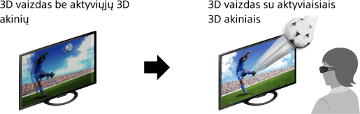 Galite išbandyti įspūdingas 3D pramogas, pvz., 3D stereoskopinius žaidimus ir 3D „Blu-ray“ diskus. Be to, galite žiūrėti 3D efektais papildytą įprastinį 2D turinį.