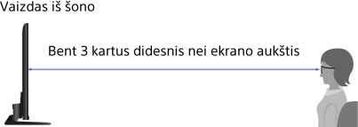 - Rekomenduojamas žiūrėjimo kampas ir atstumas priklauso nuo televizoriaus vietos ir patalpos sąlygų.