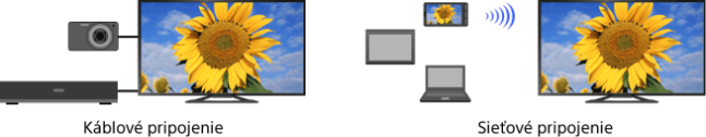 K TV prijímaču môžete pripojiť (napr. rekordér BD, digitálny fotoaparát, počítač, telefón smartphone, tablet). Z pripojeného zariadenia môžete prehrávať obsah, ako napríklad obrázky a hudbu.