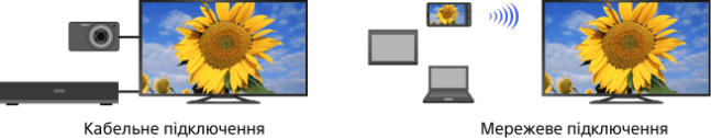 Ви можете підключати до телевізора різні пристрої, як-от записувач BD, цифрову фотокамеру, ПК, смартфон чи планшетний ПК. Відтворюйте матеріали, що зберігаються на підключеному пристрої (зображення, музику тощо).