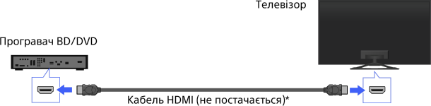 Для оптимальної якості зображення рекомендується з’єднання HDMI. Якщо програвач BD/DVD має гніздо HDMI, підключайте його за допомогою кабелю HDMI.