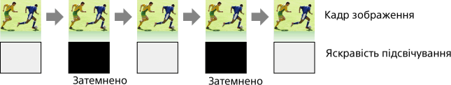 Телевізор регулює яскравість підсвічування з урахуванням значення параметра [Вибір сцени]. Увімкнення цієї функції дозволяє заощаджувати електроенергію.