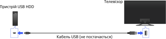 - Підключення пристрою USB HDD через USB-концентратор не підтримується. Підключайте пристрій безпосередньо до телевізора.