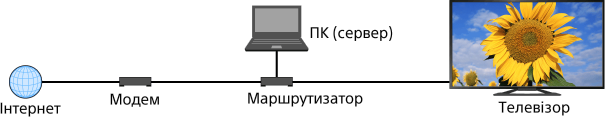 Для підключення телевізора до домашньої мережі виконайте дії, наведені в розділі «Підключення до Інтернету.»