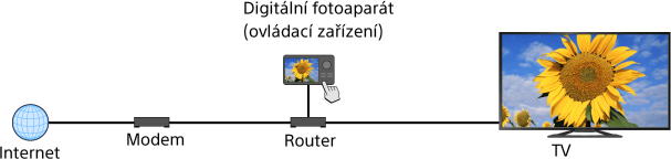 Můžete přehrávat soubory fotografií/hudby/videa v ovládacím zařízení (např. digitálním fotoaparátu) na obrazovce televizoru přímým ovládáním tohoto zařízení. Ovládací zařízení by mělo být také kompatibilní s rendererem.