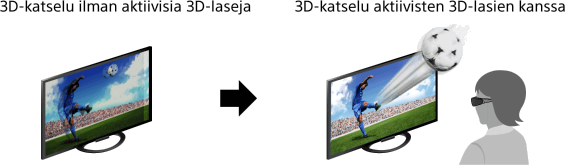 Aseta aktiiviset 3D-lasit päähän. 3D-kuvaa katseltaessa