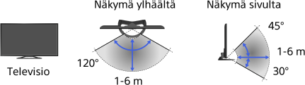 - Suositeltava katselukulma ja -etäisyys voi vaihdella television sijainnin ja tilan ominaisuuksien mukaan.