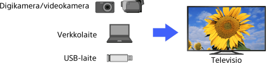 Valokuva, jonka tarkkuus on 4K tai parempi, voidaan näyttää 4K-tarkkuudella (3 840×2 160). Digikamera/videokamera, joka vastaa HDMI IN -liitäntään liitettyä HDMI 4K -lähtöä, tai USB- tai verkkolaitteelle tallennettu korkearesoluutioinen valokuva näytetään televisiossa 4K-tarkkuudella.