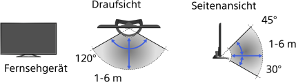 - Der empfohlene Blickwinkel und die empfohlene Entfernung können je nach dem Aufstellort des Fernsehgeräts und den räumlichen Gegebenheiten variieren.