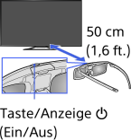 Wenn Sie die 3D-Aktivbrille zum ersten Mal verwenden, halten Sie sie maximal 50 cm vom Fernsehgerät entfernt, schalten das Fernsehgerät ein und halten die Taste/Anzeige