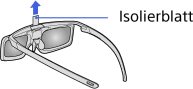 Entfernen Sie das Isolierblatt an der Batterie, bevor Sie die 3D-Aktivbrille das erste Mal benutzen.
