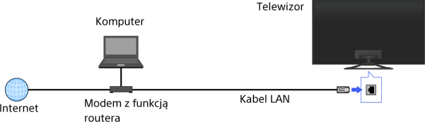 Podłączenie do przewodowej sieci LAN zapewnia dostęp do Internetu i do sieci domowej. Podłącz kabel LAN do telewizora.
