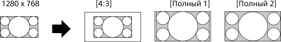 Воспроизведение изображения формата 4:3 с исходным размером. Полосы по краям позволяют заполнить экран формата 16:9.