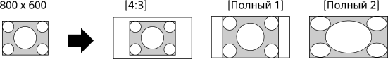 Воспроизведение изображения формата 16:9, преобразованного в формат 4:3, с правильным форматным соотношением.