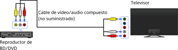 Si el reproductor de BD/DVD dispone de conectores (tomas) compuestos, conéctelo mediante un cable de vídeo/audio compuesto.