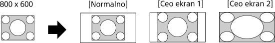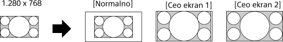 - Prikazuje sliku formata 4:3 u njenoj originalnoj veličini. Prikazuju se bočne crne pruge da bi se popunio ekran formata 16:9.