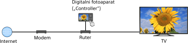 Možete da reprodukujete foto/muzičke/video datoteke u „controller“-u (npr. digitalni fotoaparat) na TV ekranu direktnim rukovanjem uređajem. „Controller“ treba takođe da bude kompatibilan sa „renderer“-om.