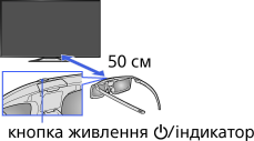 При першому використанні активних окулярів 3D тримайте їх на відстані 50 см від телевізора, увімкніть телевізор та утримуйте кнопку/індикатор