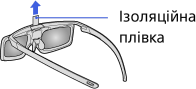 Перед першим використанням активних окулярів 3D зніміть ізоляційну плівку.