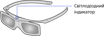Блимає світлодіодний індикатор на активних окулярах 3D.