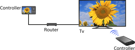 Als u de rendererfunctie inschakelt, kunt u foto-, muziek- en videobestanden via een controller (bv. een digitale fotocamera) afspelen op het tv-scherm door het apparaat rechtstreeks te bedienen. U kunt ook een mobiel apparaat (bv. smartphone) via het thuisnetwerk gebruiken als afstandsbediening voor de tv.
