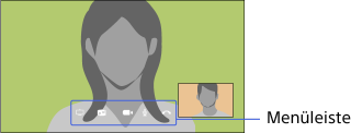 Wenn der andere Gesprächsteilnehmer im Vollbildmodus angezeigt wird, können Sie die Menüleiste mit der Taste
