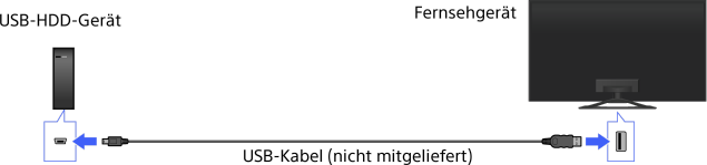 • Das Anschließen eines USB-HDD-Geräts über einen USB-Hub wird nicht unterstützt. Schließen Sie das Gerät direkt an das Fernsehgerät an.