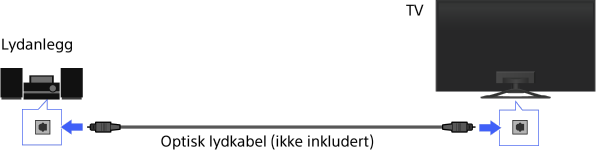 Koble til et lydanlegg (f.eks. hjemmekinoanlegg) med digital utmating til TV-en ved hjelp av en optisk lydkabel.