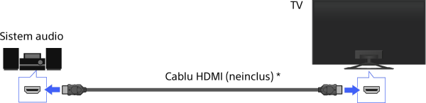 Conectaţi un sistem audio (de exemplu, sistem home theatre) la ieşirea HDMI a televizorului, cu ajutorul unui cablu HDMI.