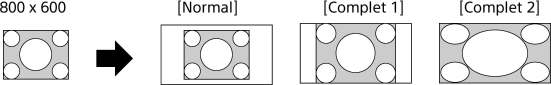 - Afişează o imagine 4:3 la mărimea sa originală. Benzile laterale sunt afişate pentru a umple ecranul 16:9.