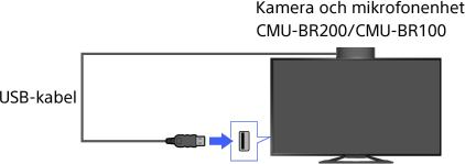 Fäst kameran på ovansidan av TV:n och anslut därefter USB-kabeln till TV:ns USB-port. Mer information om hur du fäster kameran finns i bruksanvisningen som medföljer kameran.