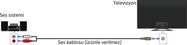 Bir ses kablosu kullanarak bir ses sistemini (örn. amplifikatör) televizyona bağlayın.