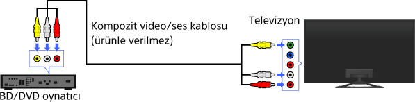BD/DVD oynatıcınızda kompozit jakları (soketleri) varsa, bunu bir kompozit video/ses kablosu kullanarak bağlayın.