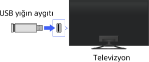- Televizyona bir Sony dijital fotoğraf makinesi bağlandığında, fotoğraf makinenizdeki USB bağlantısı ayarları [Otomatik] veya [Yığın Aygıtı] olarak ayarlanmış olmalıdır.