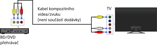 Pokud je váš přehrávač BD/DVD vybaven kompozitními konektory (zdířkami), připojte jej pomocí kompozitního video/audio kabelu.