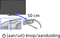 Wanneer u voor het eerst een Actieve 3D Bril gebruikt, dient u de bril op een afstand van maximaal 50 cm van de tv te houden; schakel de tv in en houd de