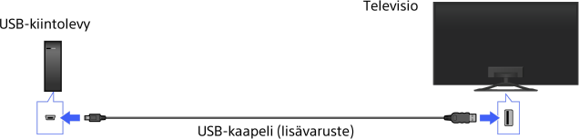 - USB HDD -laitteen kytkemistä USB-keskittimen kautta ei tueta. Kytke laite suoraan televisioon.