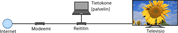 Voit toistaa television kanssa samaan kotiverkkoon yhdistetylle palvelimelle (esim. tietokoneella) tallennettuja valokuva-/musiikki-/videotiedostoja.