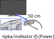 Kada Aktivne 3D naočale koristite prvi puta, držite naočale na udaljenosti manjoj od 50 cm od TV-a, uključite TV i držite tipku/indikator